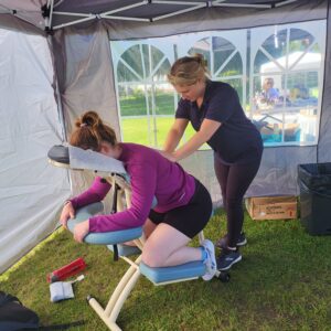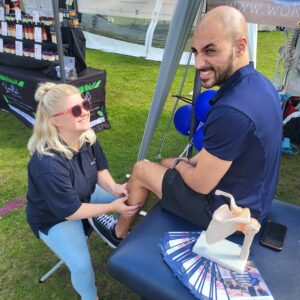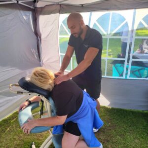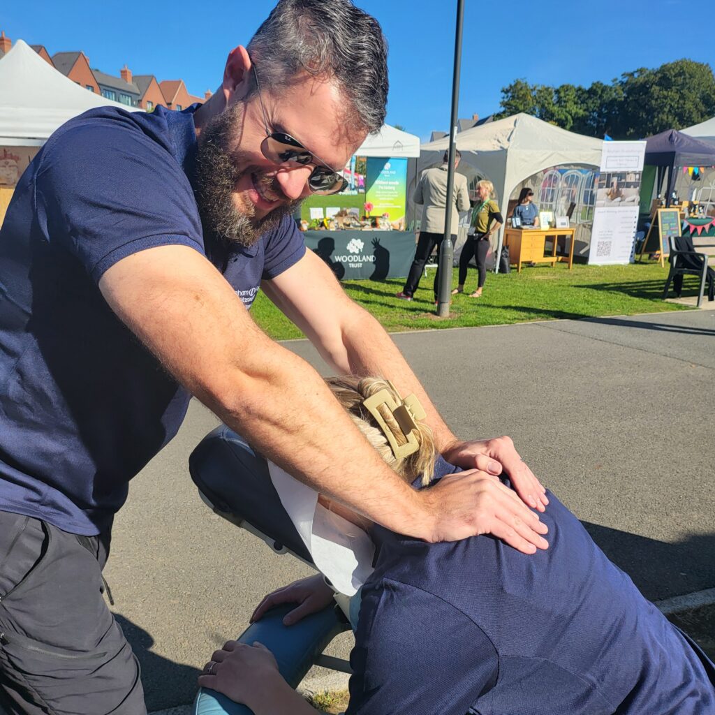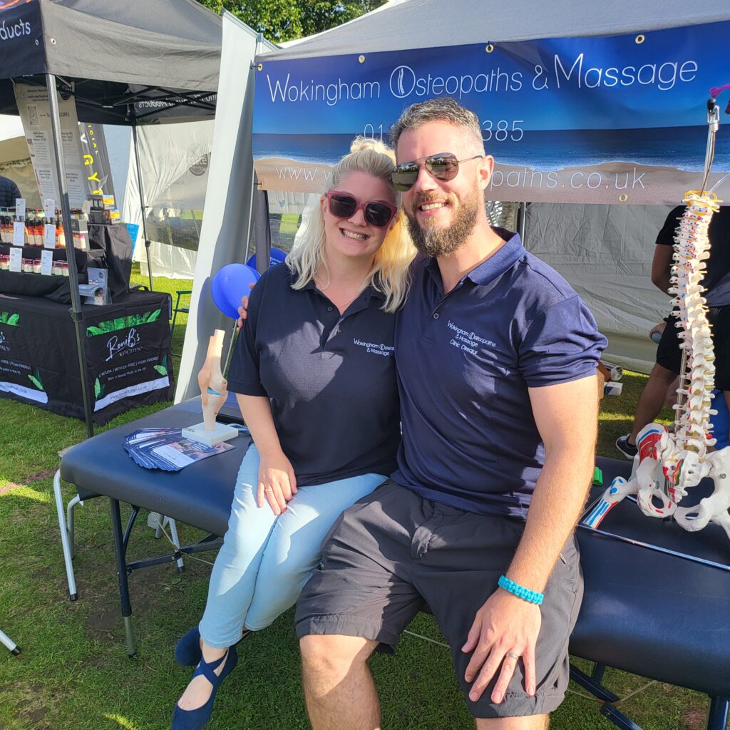 On September 14th 2024 the Wokingham Osteopaths & Massage team attended the Wokingham Wellbeing Festival hosted by Mindset Unlimited on Elms Field in Wokingham. We had such a wonderful time getting out of the busy clinic and meeting more amazing people who came to us to chat about their aches and pains, as well as enjoy great chair massages from Libby, Mo & Alex. We were totally caught out for how popular the chair massages were going to be and had to start taking bookings. Next year we will come prepared with a second so we can work on more people without an hour’s waiting list!